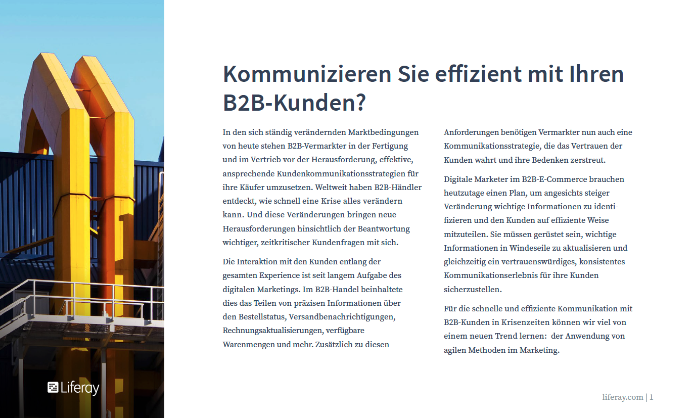 In den sich ständig verändernden Marktbedingungen von heute stehen B2B-Vermarkter in der Fertigung und im Vertrieb vor der Herausforderung, effektive, ansprechende Kundenkommunikationsstrategien für ihre Käufer umzusetzen. Weltweit haben B2B-Händler entdeckt, wie schnell eine Krise alles verändern kann. Und diese Veränderungen bringen neue Herausforderungen hinsichtlich der Beantwortung wichtiger, zeitkritischer Kundenfragen mit sich.