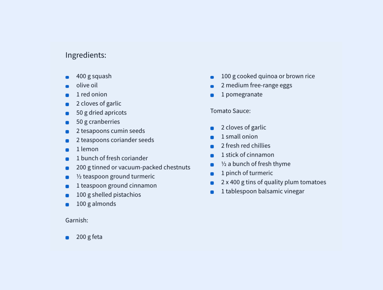 - Blitz the pistachios and almonds until they’re ground to a coarse powder with a little texture. Tip into a bowl with the quinoa or rice and dried fruit, then add the lemon zest, coriander and chestnuts. Beat and stir in the eggs (or chia seed mix) and the onion.