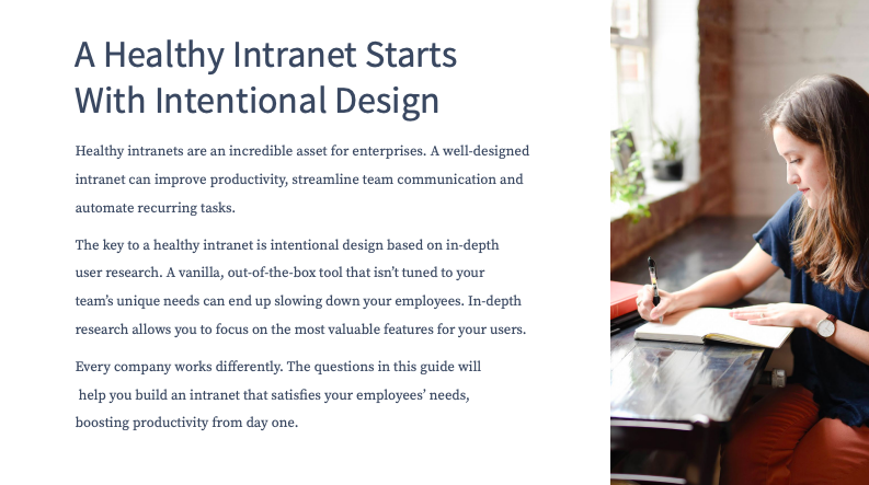 - Questions to help you identify specific pain points the right intranet design can solve
